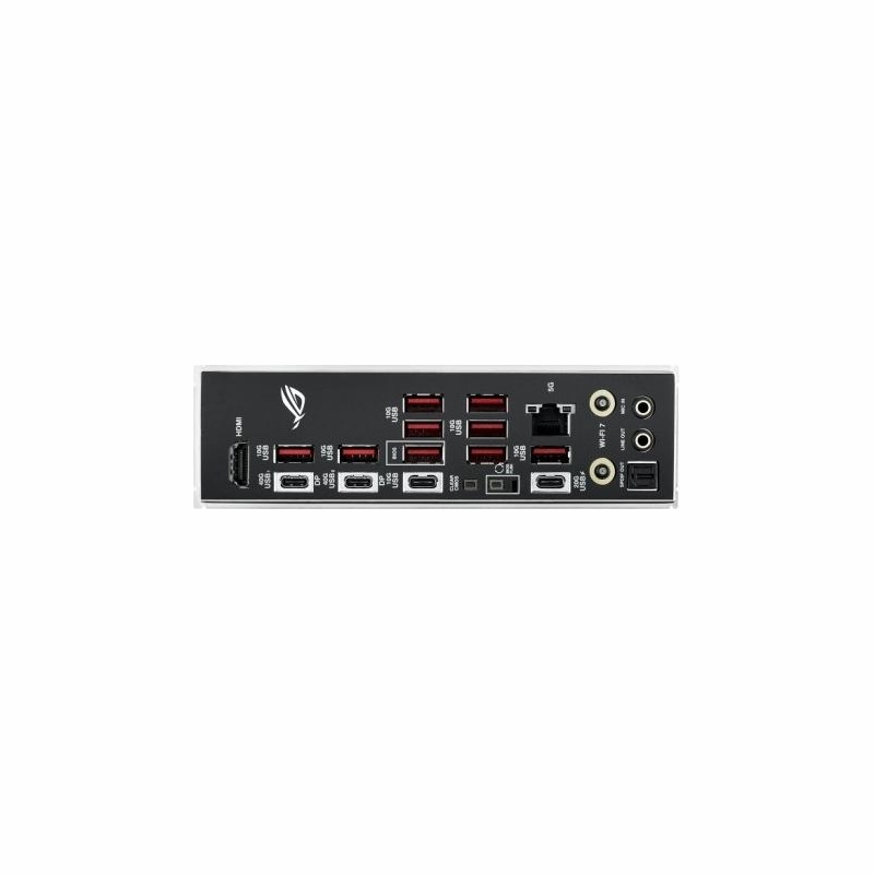 ROG SupremeFX 7.1 Surround Sound High Definition Audio CODEC ALC4080 Impedance sensing for front and rear headphone outputs Supports: jack detection, streaming, front panel microphone jack repurposing High-quality stereo playback output SNR 120 dB and recording input SNR 110 dB Supports up to 32-bit/384 kHz playback Audio features: Audio shielding Savitech SV3H712 amplifier Gold-plated audio jacks Rear optical S/PDIF output Premium audio capacitors Audio shield