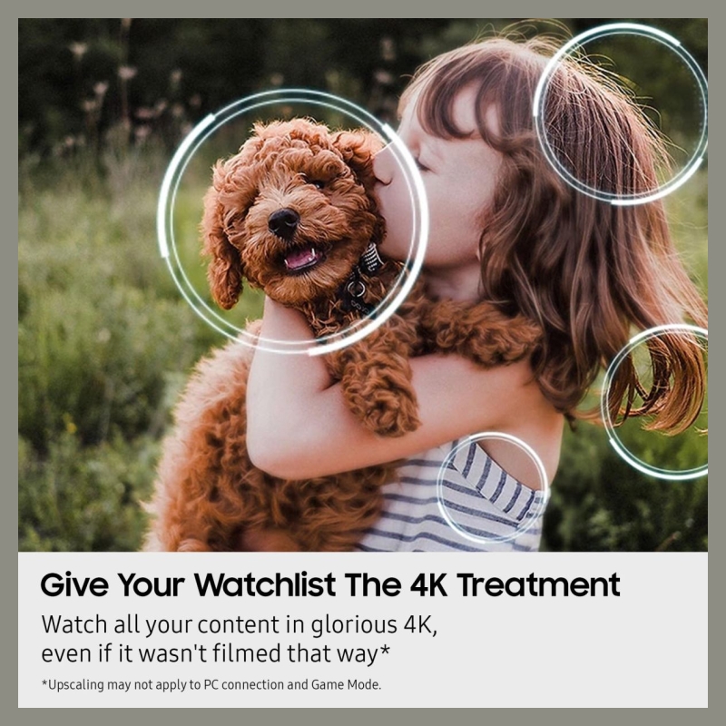 Our powerful 4K AI processor gets to work on whatever you're watching to give your visuals boosted clarity. From classic movies to the latest releases, watch in automatically upscaled 4K glory for a sharper picture and fuller colour.