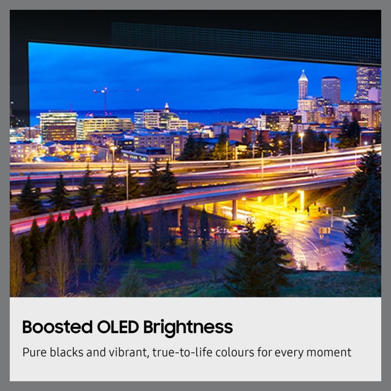 Experience real-world colours and cutting contrasts with Samsung OLED. OLED technology allows each pixel to be individually controlled - creating pure blacks, bright whites and epic contrast. Samsung OLED is Pantone validated, so that everything you watch comes to life in stunning realism.