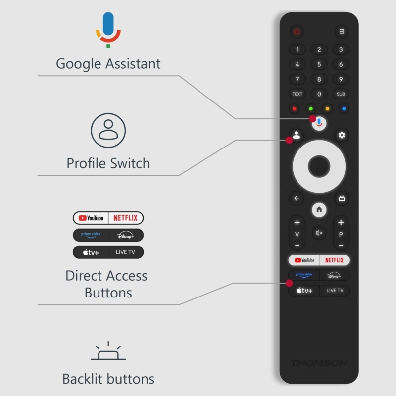 Google Assistant, allows you to easily navigate and control your TV with just your voice. Enjoy seamless integration with your smart home and the ability to play music, search for films or open apps, all with the convenience of voice commands.