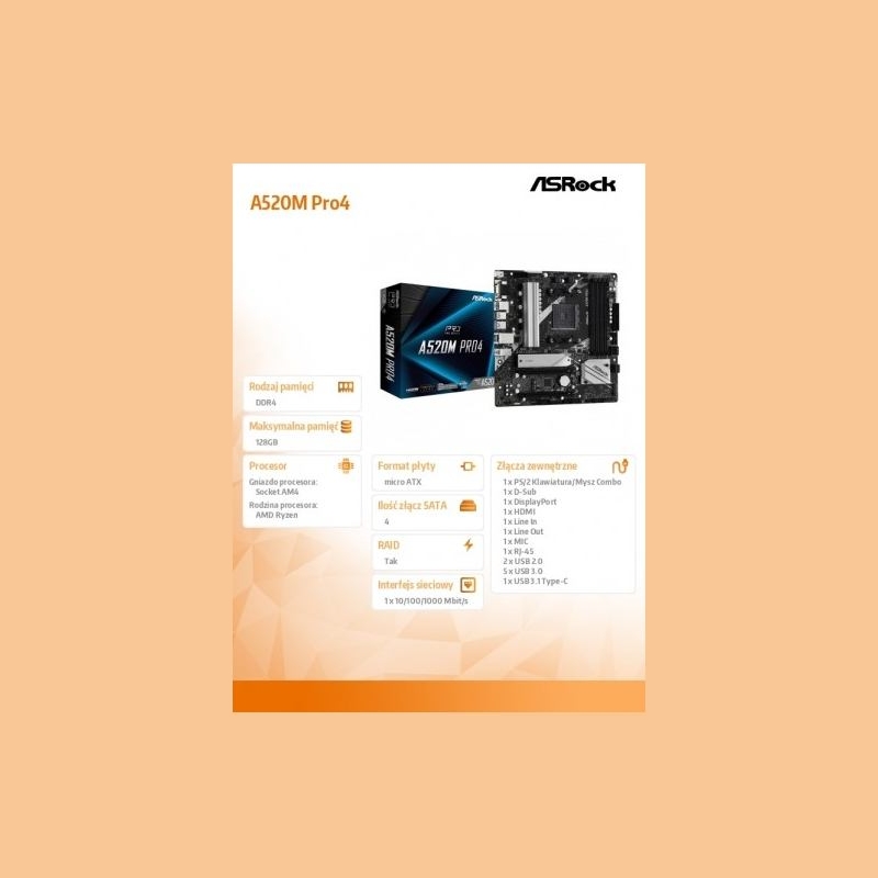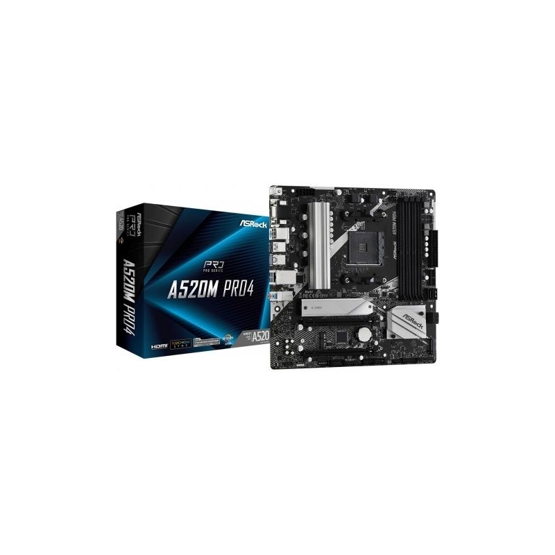 Asrock Motherboard A520M Pro4 AM4 4DDR4 HDMI/DP/VGA M.2 mATX