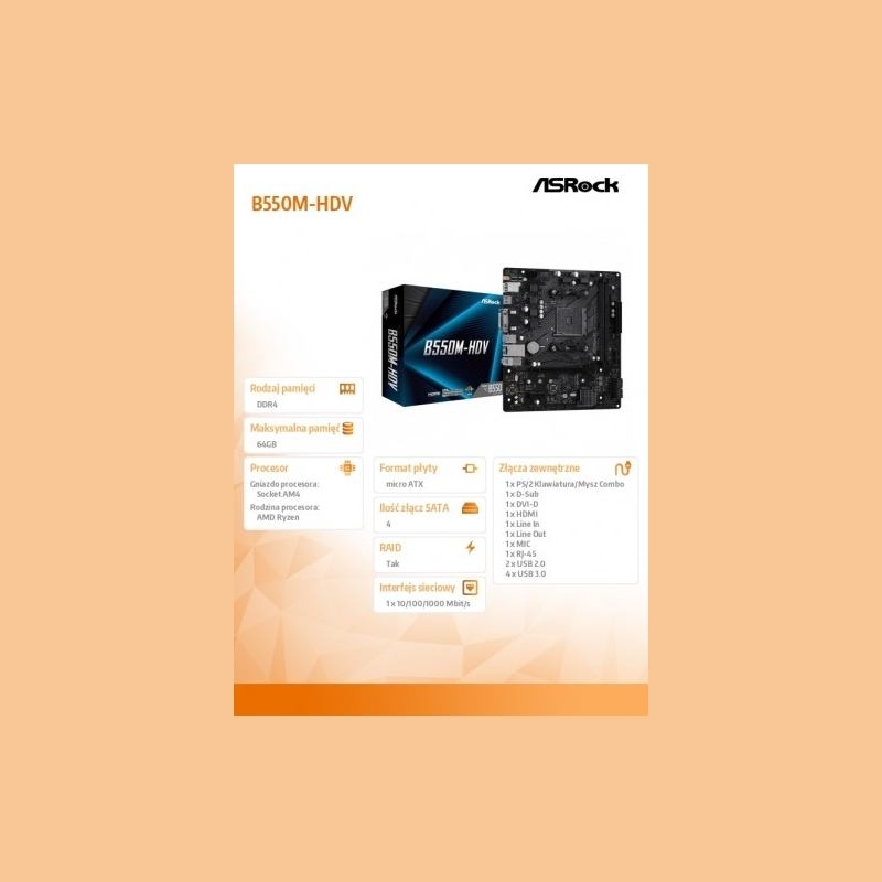 Asrock Motherboard B550M-HDV AM4 2DDR4 HDMI/DVI/D-SUB M.2 mATX