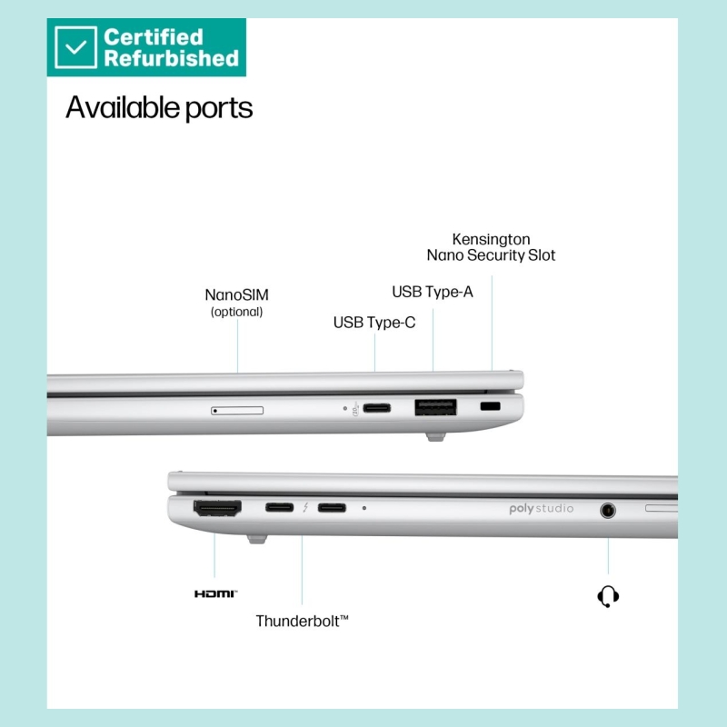 RENEW SILVER HP EliteBook 8 G1i 13 - Ultra 5-235U, 32GB, 512GB SSD, 13.3 WUXGA 300-nit AG, 5MP IR cam, Smartcard, FPR, US keyboard, 62Wh, Win 11 Pro, 1 years