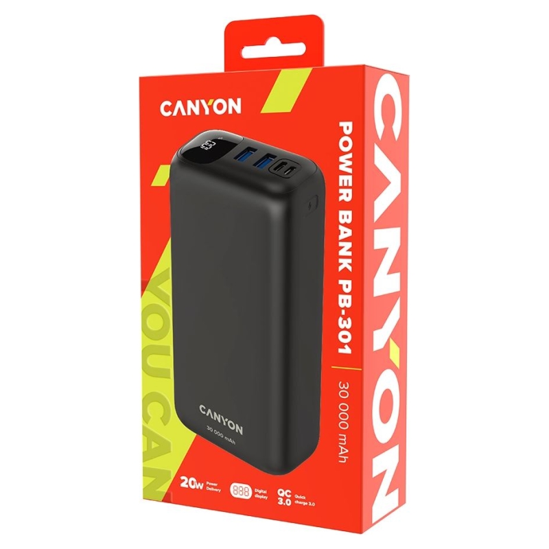 CANYON power bank PB-301 LED 30000 mAh PD 20W QC 3.0 Black