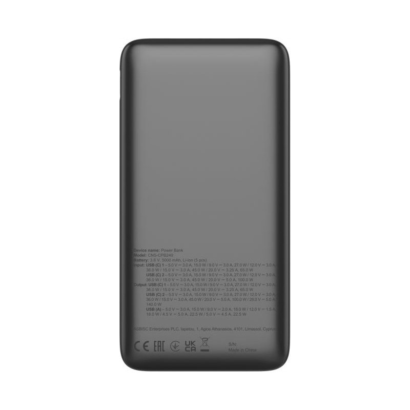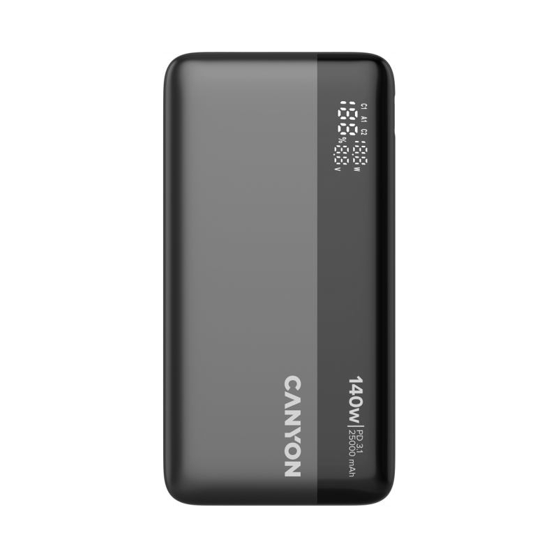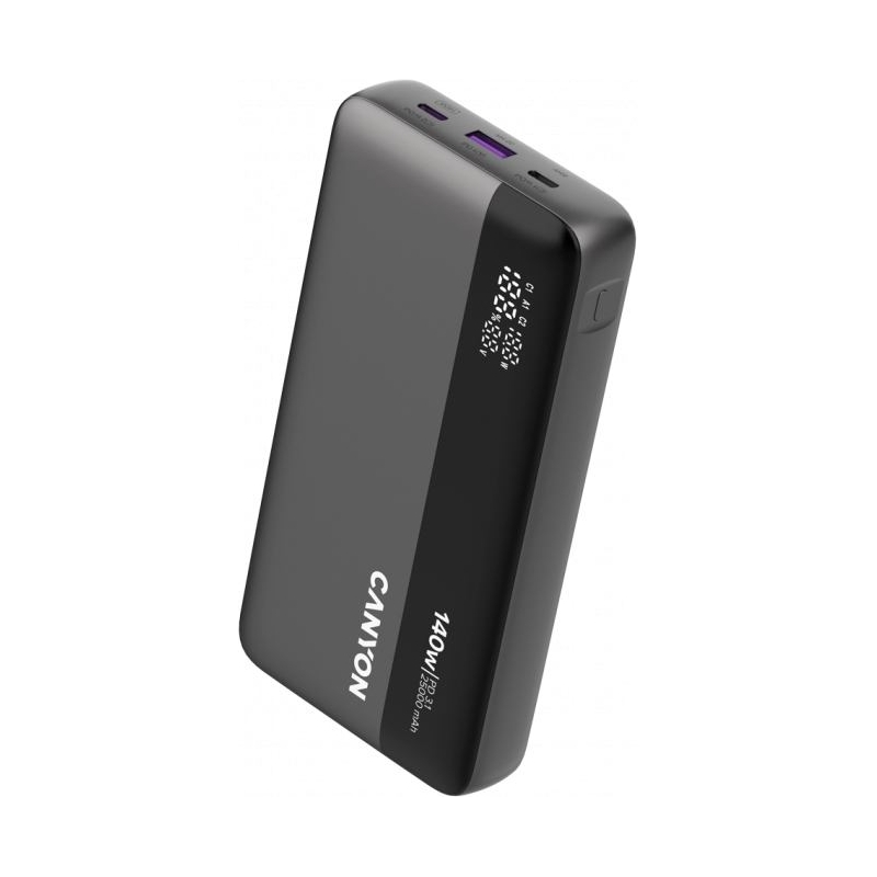 Canyon Power Bank PB-240, 25000mAh PD140W display power bank,Size160.0x82x27 mm Weight 508+-10g, Dark Grey