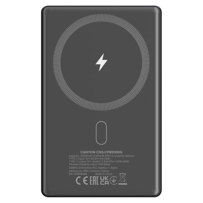 CANYON power bank OnPower 510 slim Magnetic 10000 mAh PD20W Dark Grey