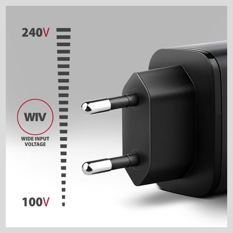 An advanced output protection system of the charging adapter protects connected devices against damage. Charger functions also ensure recognition of the connected device and selection of the optimal charging speed and process.