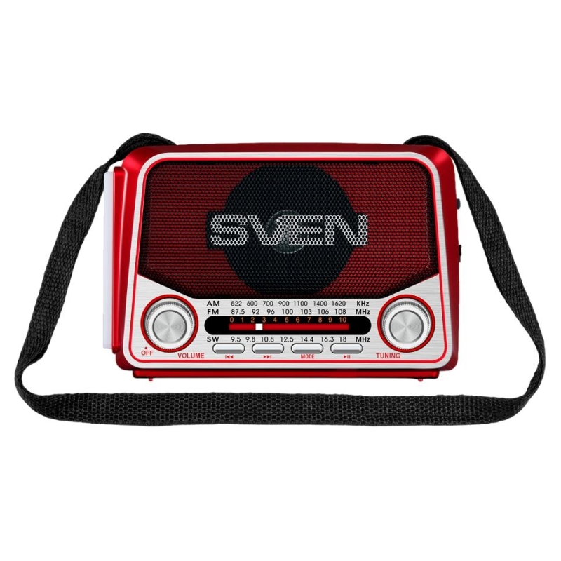 Sven Speaker SVEN SRP-150, red (3W, Bluetooth, FM/AM/SW, USB, microSD, flashlight, battery)