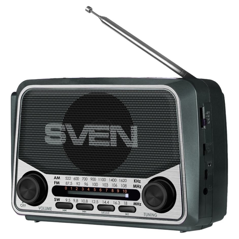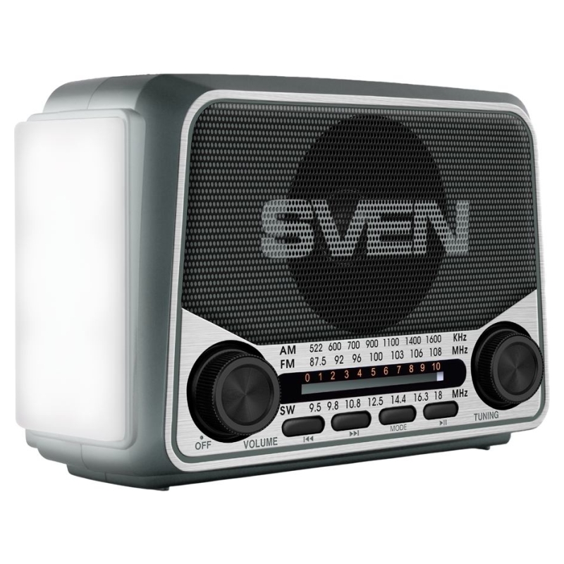 Sven Speaker SVEN SRP-150, gray (3W, Bluetooth, FM/AM/SW, USB, microSD, flashlight, battery)