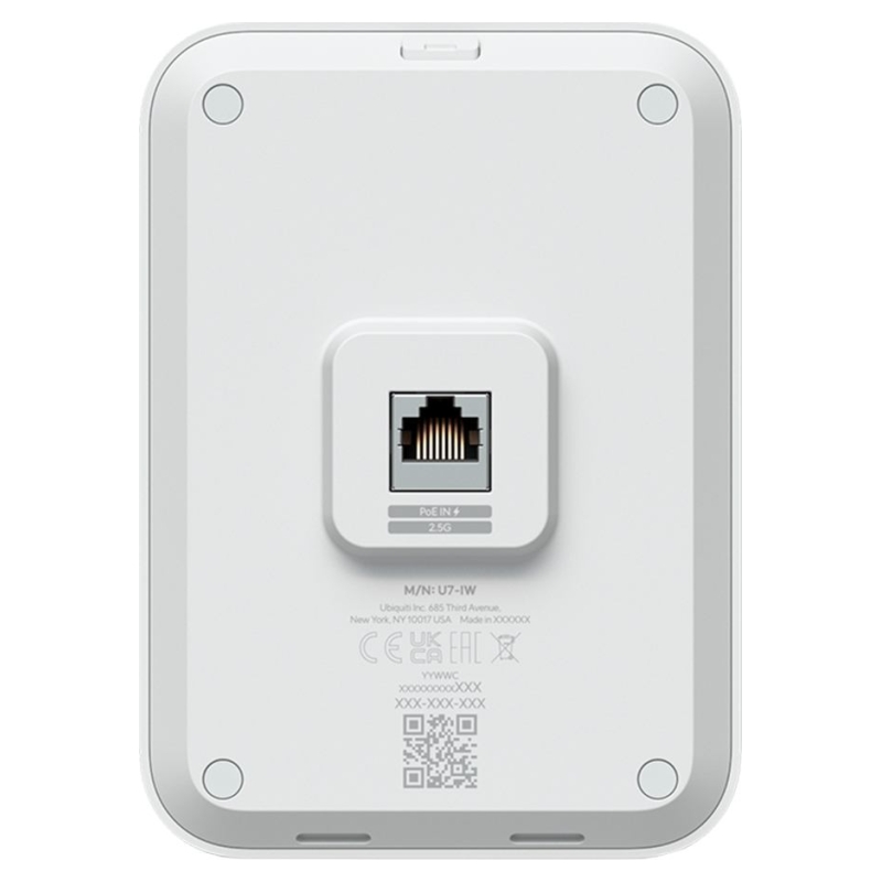 Ubiquiti UniFin U70IW Wall mounted WiFi 7 AP with 4 spatial streams and an integreated 2.5GbE PoE switch desined for hospitality