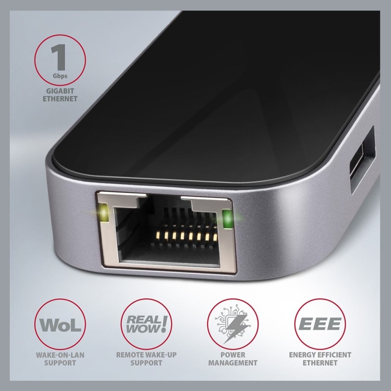 Multiport USB-C 3.2 Gen 1 hub AXAGON HMC-6GL expands your laptop, computer or phone with six ports. You can easily and quickly connect up to three USB devices, Gigabit Ethernet network and HDMI display to your computer at the same time via the doublesided USB-C connector. You also get the possibility to supply laptop using Power Delivery technology at the same time. The USB-C hub will provide you with a simple and compact 6in1 docking station for notebook like MacBook Pro.