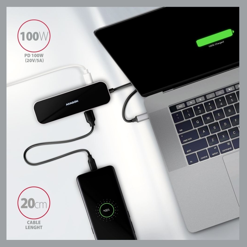 • Maximum power supply power via PD USB-C hub output 100W - 20V/5A.