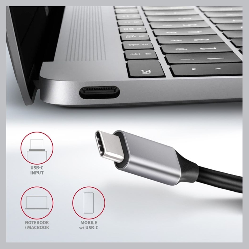 • USB-C hub with fixed 20 cm long cable,