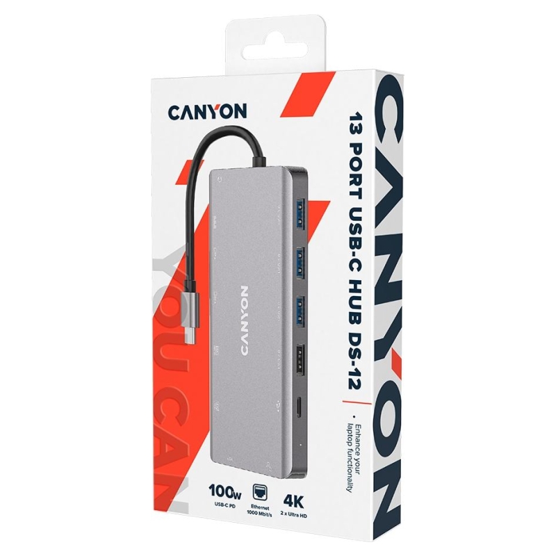Canyon hub DS-12 13in1 4k USB-C Dark Grey