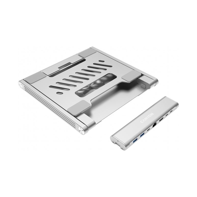 Canyon Laptop stands with hub, TYPE C F to HDMI2.0+2USB3.0+USBC3.0+RJ45+PD, TYEP C TO C cable 1m white with Emarker: HUSB332A, M