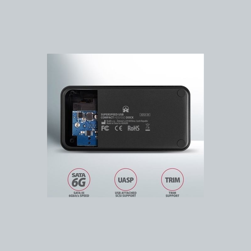 SuperSpeed USB AXAGON ADSA-SN COMPACT HDD/SSD DOCK docking station easily and quickly connects any SATA disk to your computer.