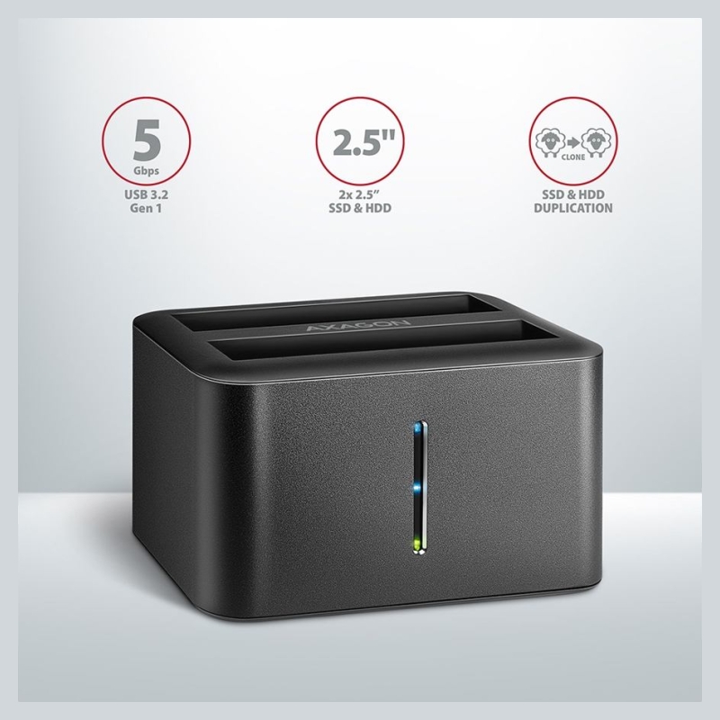 Axagon ADSA-D25 USB 3.2 Gen 1 - 2x SATA 6G 2.5" SSD/HDD CLONE DUAL MINI dock