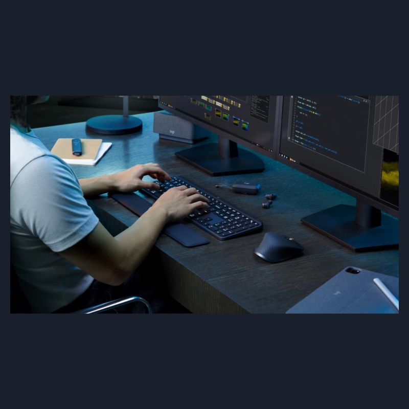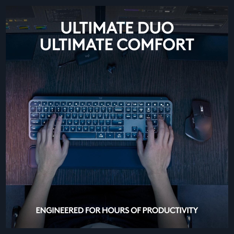 - Smarter Illumination: Backlit keyboard keys light up as your hands approach and adapt to the environment; now with more lighting customizations on Logi Options+