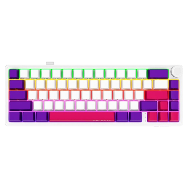 - NKRO support <br/>Hot-swappable switches <br/>Gasket mount design <br/>RGB Backlight <br/>16 Modes of Lighting <br/>Multimedia knob <br/>Multicolored keys <br/>Charge level indicators keys (1-0)