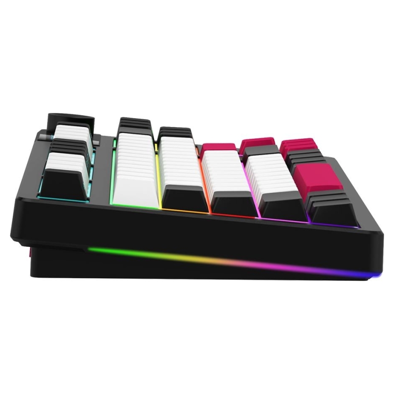 - RGB Lighting <br/>NKRO support <br/>Hot-swappable switches <br/>Gasket mount design <br/>Multicolored keys <br/>19 Modes of Lighting <br/>Configurable multicolor RGB display <br/>Multimedia smart knob