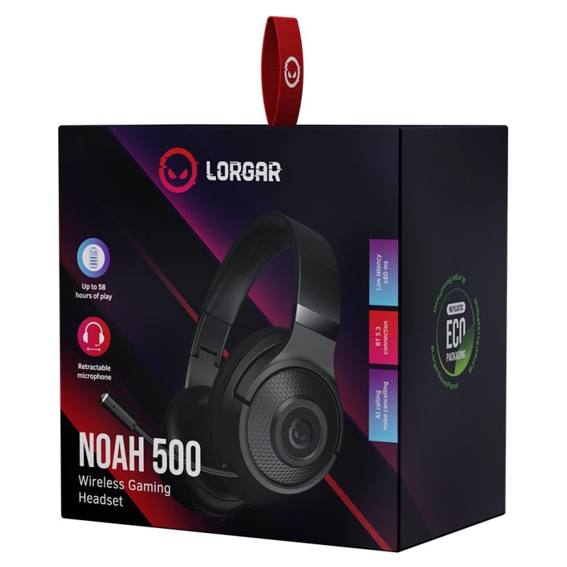 Lorgar Noah 500, Wireless Gaming headset with microphone, JL7006, BT 5.3, battery life up to 58 h (1000mAh), USB (C) charging ca