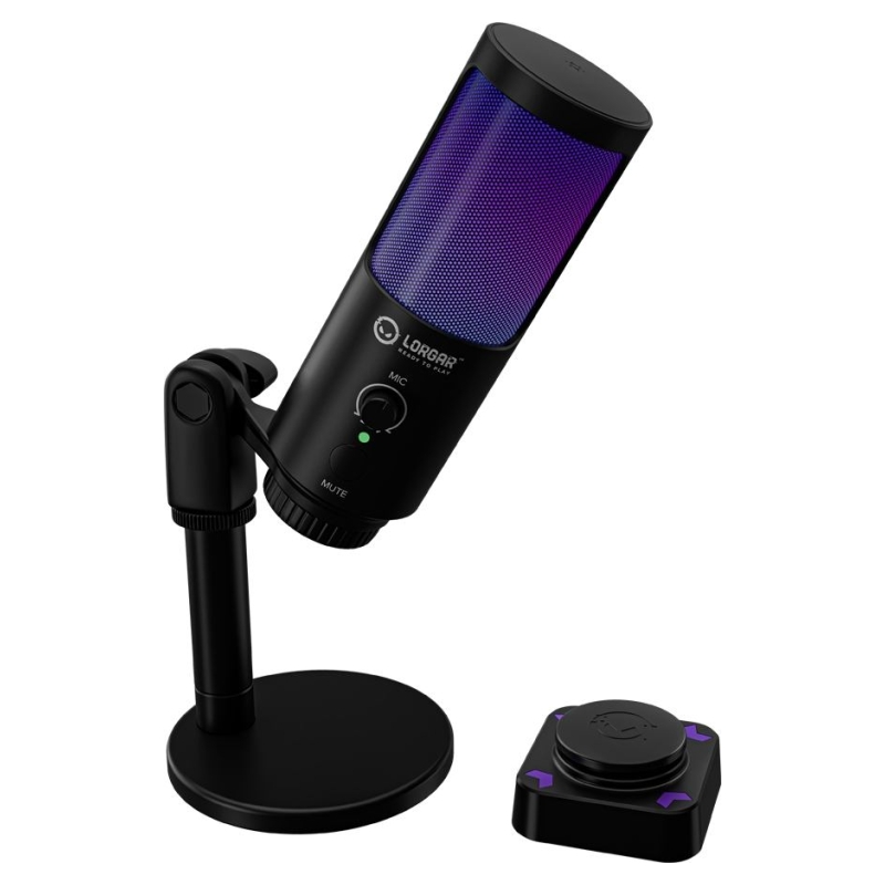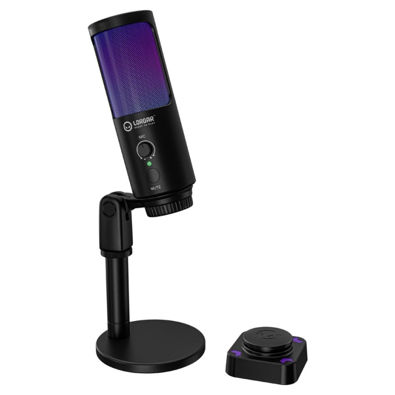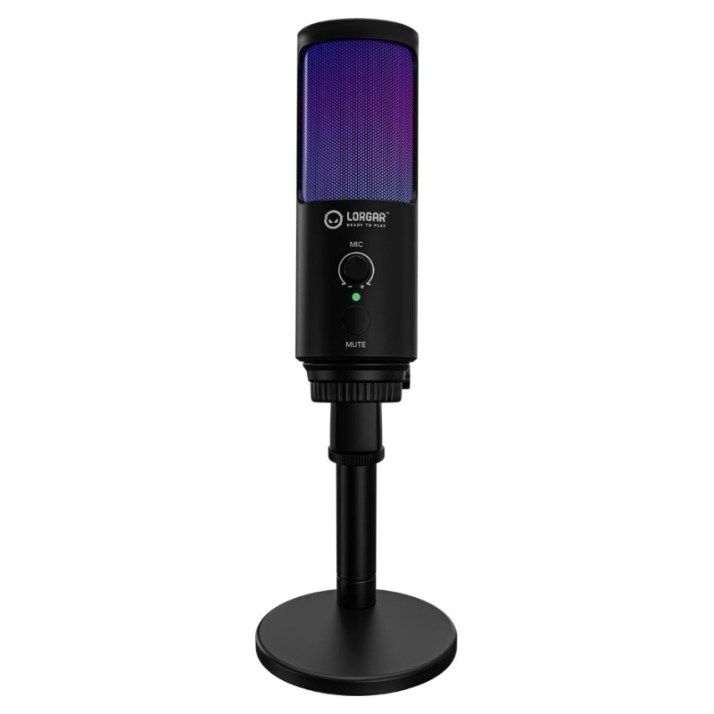 Lorgar SMP40, RGB Microphone with external mute button and metal stand, Black