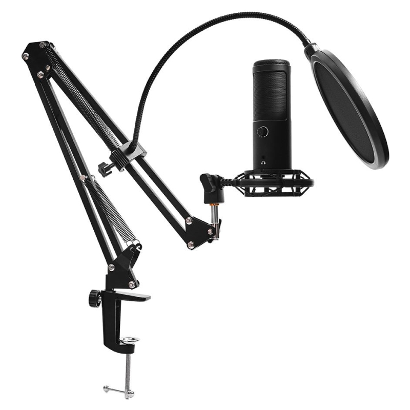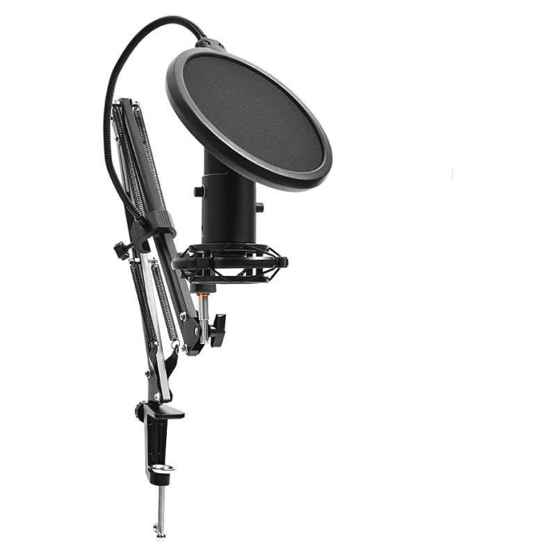 Lorgar Voicer 931, Gaming Microphone, Black, USB condenser microphone with boom arm stand, pop filter, tripod stand. including 1