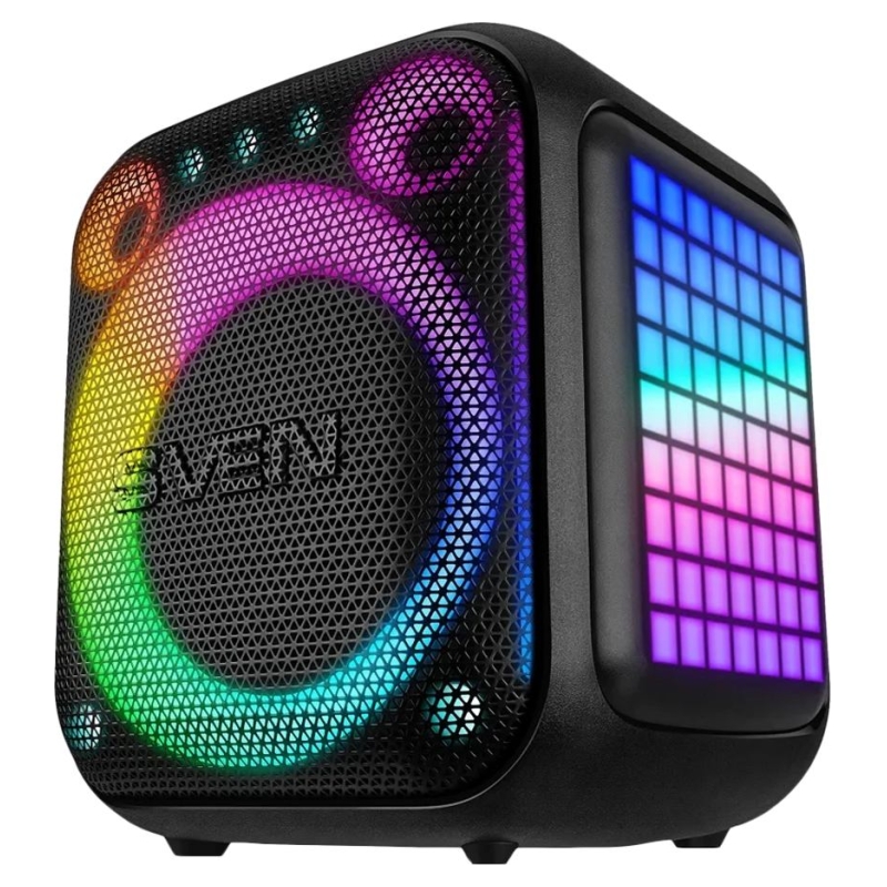 Sven PS-880, black, power output 110W (RMS), TWS, Bluetooth, FM, USB, microSD, LED-display, lithium battery