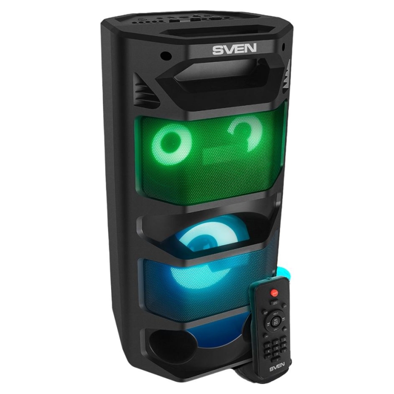 Sven 2.0 portable speaker SVEN PS-670, black, power output 2x32.5W (RMS), TWS, Bluetooth, FM, USB, microSD, LED-display, RC, lit