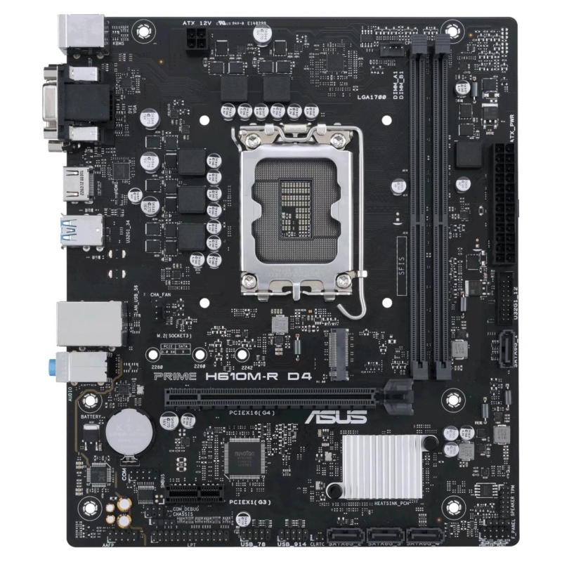 Storage M.2 slot (up to 32 Gbps) Prime H610M-R D4 offers one M.2 slot that supports data-transfer speeds of up to 32 Gbps via PCIe 3.0, enabling quicker boot-up and app load times with OS or application drives.
