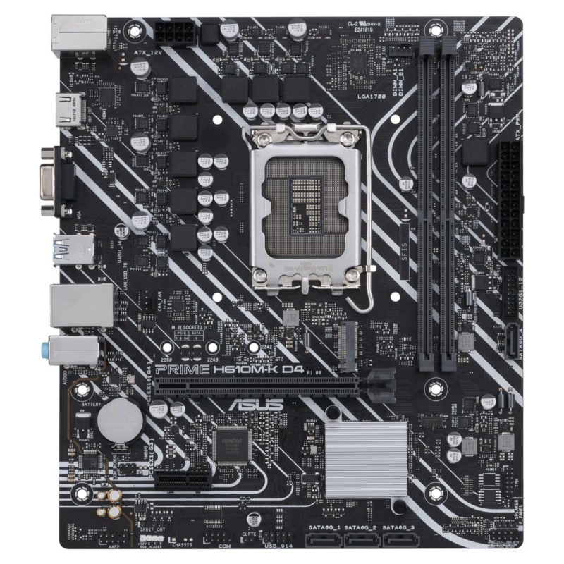 Prime H610M-K D4 offers one M.2 slot that supports data-transfer speeds of up to 32 Gbps via PCIe 3.0, enabling quicker boot-up and app load times with OS or application drives.
