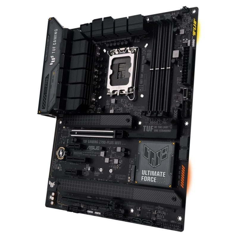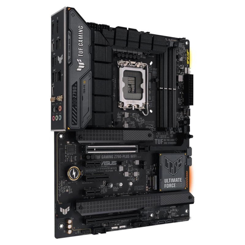 TUF GAMING Z790-PLUS WIFI takes all the essential elements of the latest Intel® processors and combines them with game-ready features and proven durability. Engineered with military-grade components, an upgraded power solution and a comprehensive cooling system, this motherboard goes beyond expectations with rock-solid performance for marathon gaming. TUF GAMING motherboards also undergo rigorous endurance testing to ensure that they can handle conditions where others may fail. Aesthetically, this model incorporates an embossed nameplate and geometric design elements to reflect the dependability and stability that defines the TUF GAMING series.