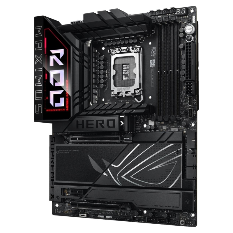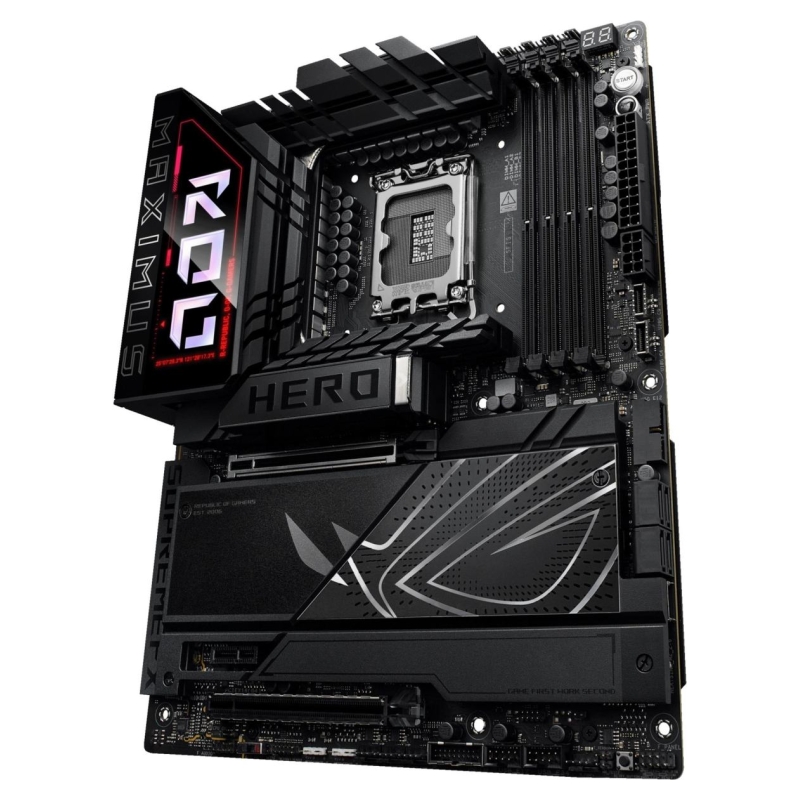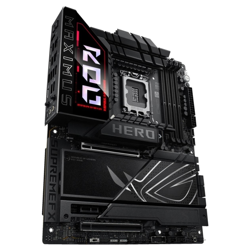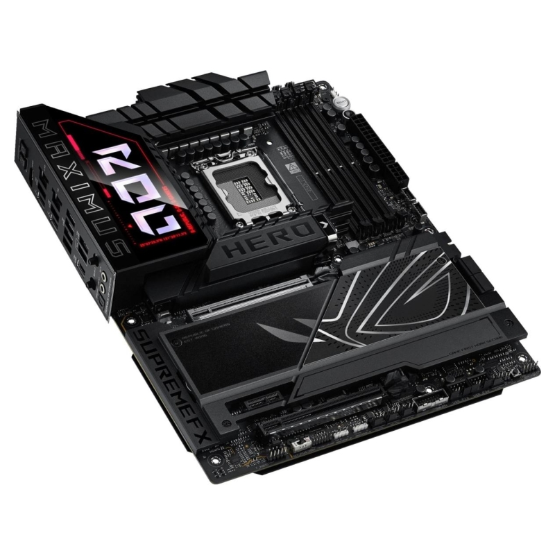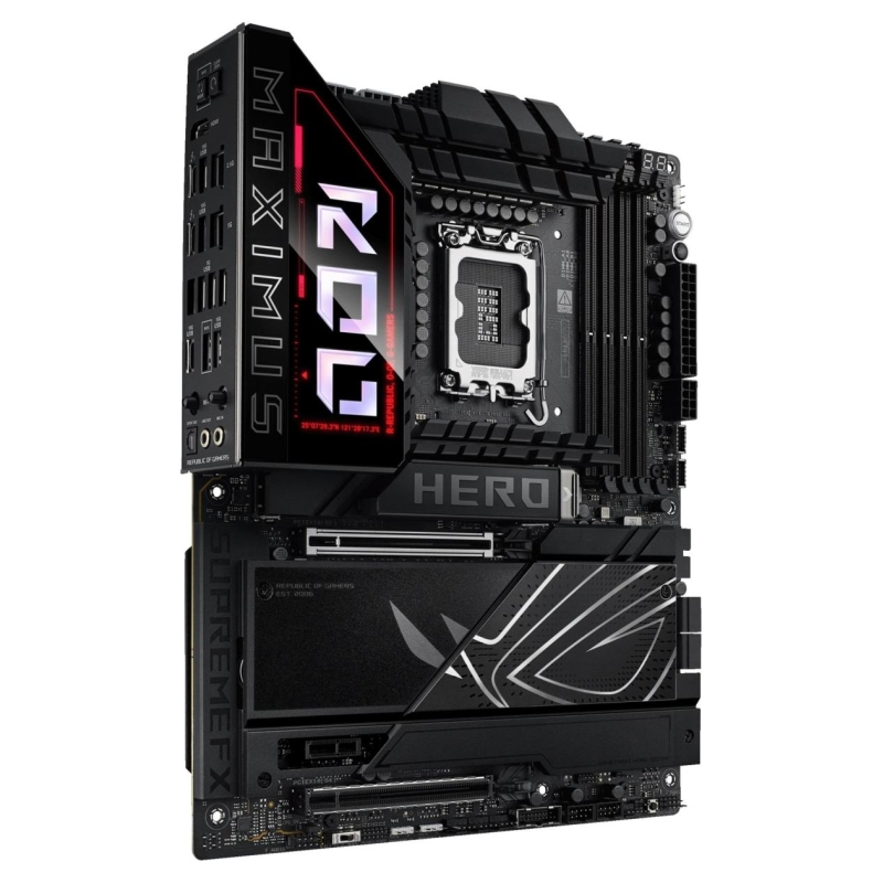 ROG Maximus Z890 HERO The ROG Maximus Z890 Hero unleashes the performance of Intel® Core™ Ultra processors (Series 2) via exclusive AI PC technologies, robust power delivery, optimized thermal management, extensive PCIe® 5.0 support, DDR5 slots and WiFi 7. Meanwhile, angular design elements and Polymo II Lighting accents around the ROG logo deliver a signature aesthetic that elevates system design.