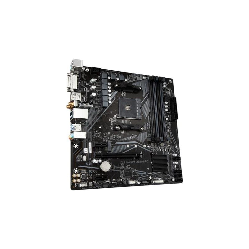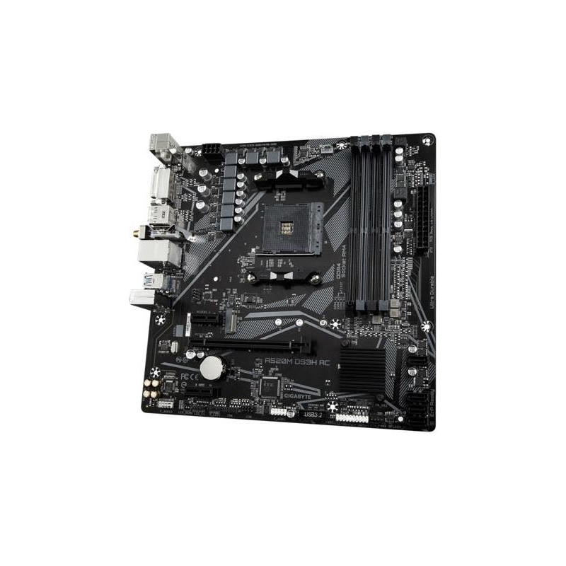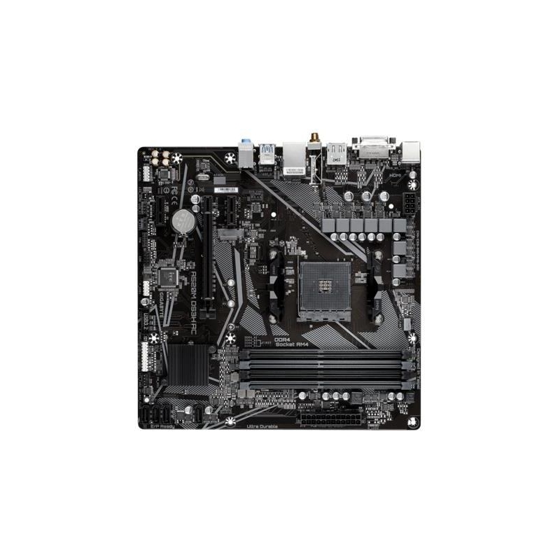 Supports AMD Ryzen 5000 Series/ Ryzen 5000 G-Series/ Ryzen 4000 G-Series and Ryzen 3000 and Ryzen 3000 G-Series Processors Dual Channel ECC/ Non-ECC Unbuffered DDR4, 4 DIMMs 5+3 Phases Pure Digital VRM Solution with Low RDS(on) MOSFETs Ultra-Fast NVMe PCIe 3.0 x4 M.2 Connector Onboard Intel Dual Band 802.11ac Wireless & BT 4.2 with WIFI Antenna GIGABYTE Exclusive 8118 Gaming LAN with Bandwidth Management HDMI, DVI-D, Display Ports for Multiple Display RGB FUSION 2.0 Supports Addressable LED & RGB LED Strips Smart Fan 5 Features Multiple Temperature Sensors, Hybrid Fan Headers with FAN STOP Q-Flash Plus Update BIOS without Installing the CPU, Memory and Graphics Card Manufacturer Website: https://www.gigabyte.com/ Category Code MBA CnCode 84733020 Unit Box Height 0.07 Unit Box Length 0.27 Unit Box Width 0.27 Audio output channels 7.1 channels Component for PC Motherboard chipset AMD A520 Motherboard chipset family AMD Motherboard form factor micro ATX PC health monitoring Fan/Temperature/Voltage Power source type ATX Windows operating systems supported Windows 10 x64/Windows 11 Compatible processor series AMD Ryzen 3000 Series/AMD Ryzen Threadripper 3000 Series/AMD Ryzen Threadripper PRO 3000 WX-Series Maximum number of SMP processors 1 Processor manufacturer AMD Processor socket Socket AM4 Supported processor sockets Socket AM4 ECC сompatibility ECC & Non-ECC Maximum internal memory 128 GB Maximum internal memory per slot 32 GB Memory channels Dual-channel Memory slots type DIMM Number of memory slots 4 Supported memory clock speed (max) 4733 MHz Supported memory clock speeds 2133/2400/2667/2933/3200/3300/3333/3400/3466/3600/3733/3800/3866/4000/4400/4733 MHz Supported memory types DDR4-SDRAM Unbuffered memory Yes Number of HDDs supported 4 Number of storage drives supported 5 RAID levels 0/1/10 RAID support Yes Supported storage drive interfaces M.2,SATA III Supported storage drive types HDD & SSD Discrete graphics support Yes HDCP Yes Maximum resolution 5120 x 2880 pixels Number of displays supported 3 Parallel processing technology support Not supported 12V power connector Yes ATX Power connector (24-pin) Yes CPU fan connector Yes EPS power connector (8-pin) Yes Front panel audio connector Yes Front panel connector Yes Number of chassis fan connectors 2 Number of CPU fan connectors 1 Number of EPS power connectors (8-pin) 1 Number of RGB LED pin headers 2 Number of SATA III connectors 4 RGB LED pin header Yes Serial port headers 1 Total number of SATA connectors 4 TPM connector Yes USB 2.0 connectors 1 USB 3.2 Gen 1 (3.1 Gen 1) connectors 1 DisplayPort version 1.4 DisplayPorts quantity 1 DVI-D ports quantity 1 Ethernet LAN (RJ-45) ports 1 HDMI ports quantity 1 HDMI version 2.1 Headphone outputs 1 Line-in Yes Microphone in Yes PS/2 ports quantity 1 USB 2.0 ports quantity 2 USB 3.2 Gen 1 (3.1 Gen 1) Type-A ports quantity 4 WiFi-AP antenna jack 2 Bluetooth Yes Bluetooth version 4.2 Ethernet interface type Gigabit Ethernet Ethernet LAN Yes Top Wi-Fi standard Wi-Fi 5 (802.11ac) Wi-Fi Yes Wi-Fi standards 802.11a/802.11b/802.11g/Wi-Fi 4 (802.11n)/Wi-Fi 5 (802.11ac) WLAN controller model Intel Dual Band Wireless-AC 3168 1st M.2 highest PCI Express generation 3.0 1st M.2 largest key size 2280 Number of M.2 (M) slots 1 PCI Express x1 (Gen 3.x) slots 2 PCI Express x16 (Gen 3.x) slots 1 ACPI version 5.0 BIOS memory size 128 Mbit BIOS type UEFI AMI Clear CMOS jumper Yes Desktop Management Interface (DMI) version 2.7 System Management BIOS (SMBIOS) version 2.7 Battery technology Lithium-Manganese Dioxide (LiMnO2) Battery type CR2032 Battery weight 3 g Lithium weight per battery 0.07 g Number of battery cells 1 Package depth 268 mm Package height 68 mm Package weight 1210 g Package width 270 mm Products per shipping (inner) case 1 pc(s) Depth 244 mm Height 35 mm Width 244 mm Antenna included Yes Batteries included Yes Screws included Yes Warranty period 3 year(s) Weight 720 g Model A520M DS3H AC 1.4 Units per Shipping Box 10 Unit Calculated Volume 0.0060088 cubm Unit Calculated Weight 1.03 kg