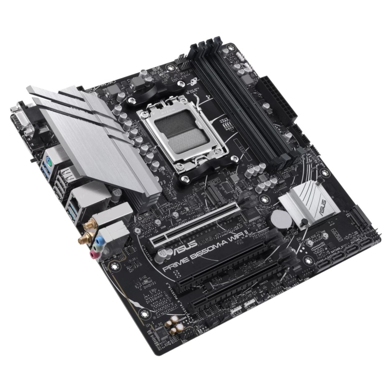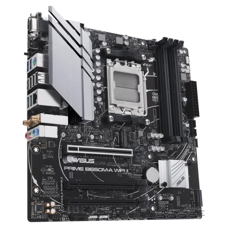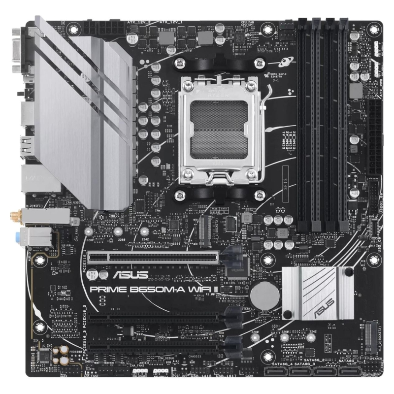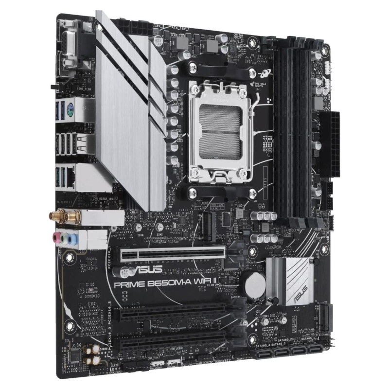 B650M-A WIFI II ASUS Prime series motherboards are expertly engineered to unleash the full potential of AMD Ryzen 7000-series processors. Boasting a robust power design, comprehensive cooling solutions and intelligent tuning options, PRIME B650M-A WIFI II provides users and PC DIY builders with a range of performance optimizations via intuitive software and firmware features.