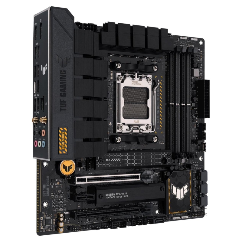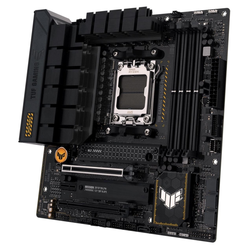 ASUS TUF GAMING B650M-PLUS WIFI takes all the essential elements of the latest AMD Ryzen 7000-series processors and combines them with game-ready features and proven durability. Engineered with military-grade components, an upgraded power solution and a comprehensive cooling system, this motherboard goes beyond expectations with rock-solid and stable performance for marathon gaming. TUF GAMING motherboards also undergo rigorous endurance testing to ensure that they can handle conditions where others may fail. Aesthetically, this model incorporates rugged off-black and geometric design elements to reflect the dependability and stability that defines the TUF GAMING series.