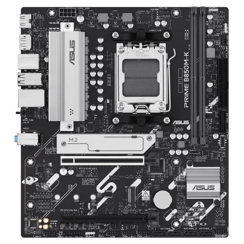 ASUS Prime series motherboards are expertly engineered to unleash the full potential of AMD Ryzen™ 9000 series processors. The PRIME B850M-K motherboard provides users and PC DIY builders with a range of performance optimizations via intuitive software and firmware features. It’s designed to be Advanced AI PC-ready, offering the power and connectivity needed for demanding AI applications.