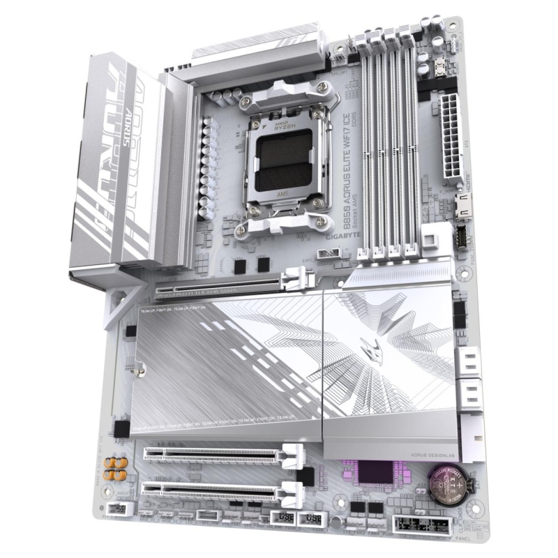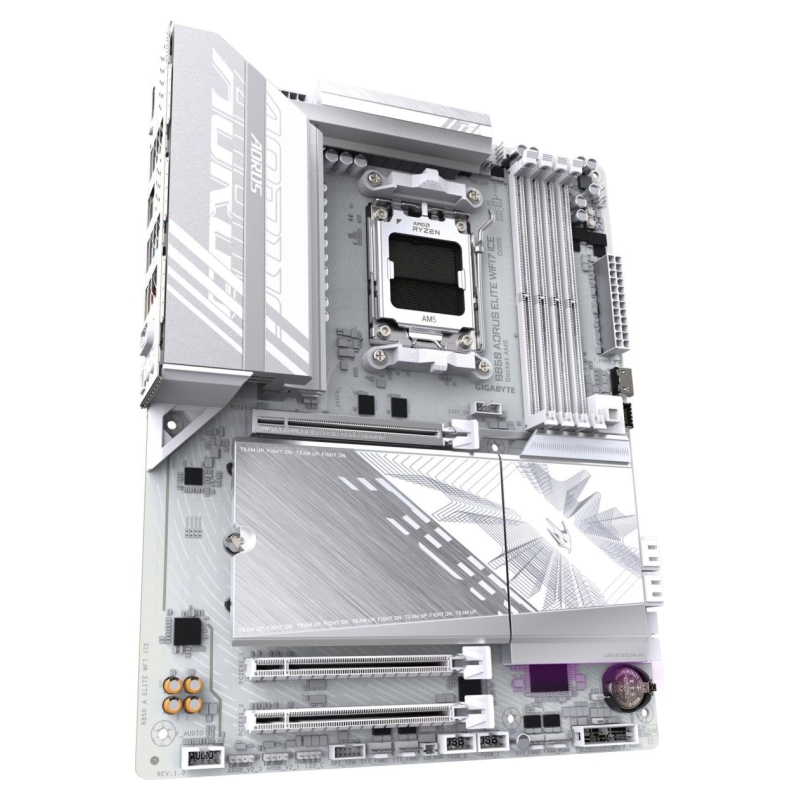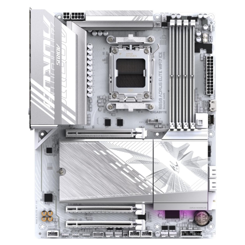 Twin 14+2+2 Phases Digital VRM with DrMOS Dual Channel DDR5:4*DIMMs PCIe Gen5 x16 with PCIe UD Slot & EZ-Latch Plus M.2 Gen5 with EZ-Latch Plus, Fully Covered MOSFET Heatsinks Wi-Fi 7 with WIFI EZ-Plug & Directional Antenna 2.5GbE LAN, Q-Flash Plus Manufacturer Website: https://www.gigabyte.com/ Category Code MBA CnCode 84733020 Unit Box Height 0.081 Unit Box Length 0.34 Unit Box Width 0.27 Audio chip Realtek ALC897 Audio output channels 7.1 channels Component for PC Motherboard chipset AMD B850 Motherboard chipset family AMD Motherboard form factor ATX PC health monitoring Fan/Temperature/Voltage/Water cooling Power source type ATX Product colour Brown/White Windows operating systems supported Windows 10 x64/Windows 11 x64 Compatible processor series AMD Ryzen 7000 Series/AMD Ryzen 8000 Series/AMD Ryzen 9000 Series Processor manufacturer AMD Processor socket Socket AM5 Supported processor sockets Socket AM5 ECC сompatibility Non-ECC Maximum internal memory 256 GB Maximum internal memory per slot 64 GB Memory channels Dual-channel Memory slots type DIMM Number of memory slots 4 Supported memory clock speed (max) 8200 MHz Supported memory clock speeds 4400/4800/5200/5600/5800/6000/6200/6600/6800/7000/7200/7400/7600/7900/7950/8000/8200 MHz Supported memory types DDR5-SDRAM Unbuffered memory Yes Number of HDDs supported 4 Number of storage drives supported 7 RAID levels 0/1/10 RAID support Yes Supported storage drive interfaces M.2,SATA III Supported storage drive types HDD & SSD DirectX version 12.0 HDCP Yes Maximum resolution 4096 x 2160 pixels On-board graphics card No Parallel processing technology support Not supported 12V power connector Yes ATX Power connector (24-pin) Yes CPU fan connector Yes EPS power connector (8-pin) Yes Front panel audio connector Yes Front panel connector Yes Number of chassis fan connectors 3 Number of CPU fan connectors 2 Number of EPS power connectors (8-pin) 1 Number of RGB LED pin headers 4 Number of SATA III connectors 4 Number of water pump connectors 2 Peripheral (Molex) power connectors (4-pin) 1 RGB LED pin header Yes Serial port headers 1 Total number of SATA connectors 4 TPM connector Yes USB 2.0 connectors 2 USB 3.2 Gen 1 (3.1 Gen 1) connectors 1 USB 3.2 Gen 2x2 connectors 1 DisplayPort version 1.4 DisplayPorts quantity 1 Ethernet LAN (RJ-45) ports 1 HDMI ports quantity 1 HDMI version 1.4 Headphone outputs 1 Microphone in Yes USB 2.0 ports quantity 4 USB 3.2 Gen 1 (3.1 Gen 1) Type-A ports quantity 5 USB 3.2 Gen 2 (3.1 Gen 2) Type-A ports quantity 2 USB 3.2 Gen 2 (3.1 Gen 2) Type-C ports quantity 1 WiFi-AP antenna jack 2 Bluetooth Yes Bluetooth version 5.4 Ethernet interface type 2.5 Gigabit Ethernet Ethernet LAN Yes Top Wi-Fi standard Wi-Fi 7 (802.11be) Wi-Fi Yes Wi-Fi standards 802.11a/802.11b/802.11g/Wi-Fi 4 (802.11n)/Wi-Fi 5 (802.11ac)/Wi-Fi 6 (802.11ax)/Wi-Fi 6E (802.11ax)/Wi-Fi 7 (802.11be) WLAN controller model Realtek RTL8922AE 1st M.2 highest PCI Express generation 5.0 1st M.2 largest key size 25110 2nd M.2 highest PCI Express generation 4.0 2nd M.2 largest key size 22110 3rd M.2 highest PCI Express generation 4.0 3rd M.2 largest key size 22110 Number of M.2 (M) slots 3 PCI Express x16 (Gen 4.x) slots 2 ACPI version 5.0 BIOS memory size 256 Mbit BIOS type UEFI AMI Clear CMOS button Yes Clear CMOS jumper Yes Desktop Management Interface (DMI) version 2.7 System Management BIOS (SMBIOS) version 2.7 Battery technology Lithium-Manganese Dioxide (LiMnO2) Battery type CR2032 Battery weight 3 g Country of origin China Lithium weight per battery 0.07 g Number of battery cells 1 Package depth 270 mm Package height 80 mm Package weight 2461 g Package width 335 mm Products per shipping (inner) case 1 pc(s) Depth 244 mm Height 35 mm Width 305 mm Antenna included Yes Batteries included Yes Bundled software Norton Internet Security (OEM version)