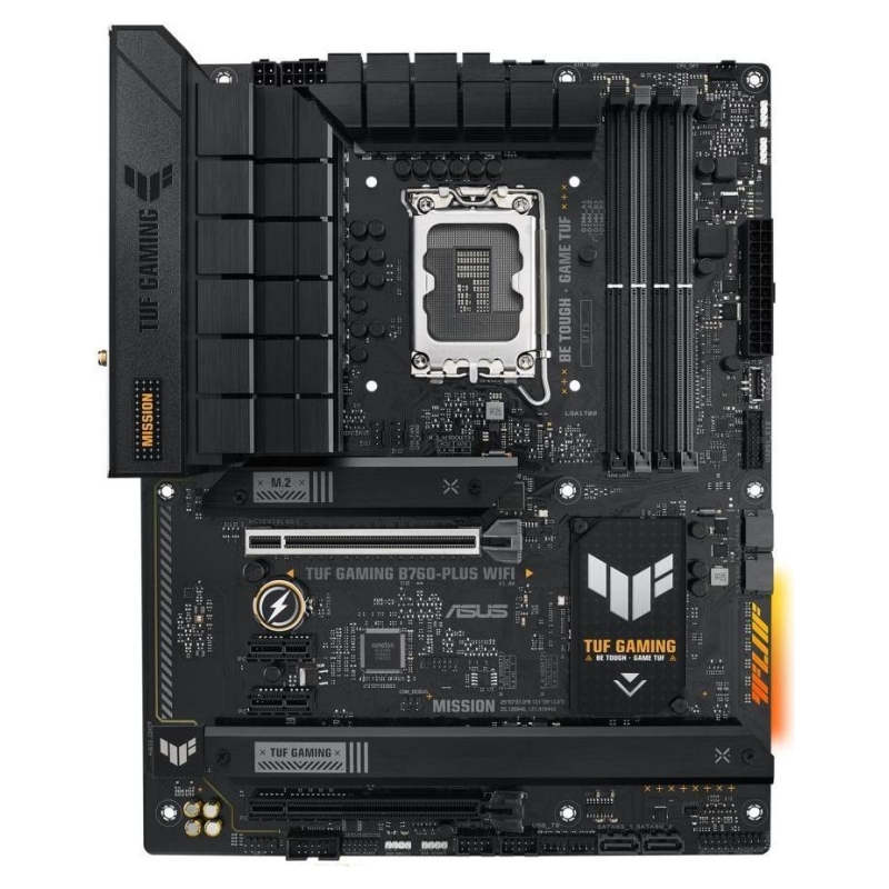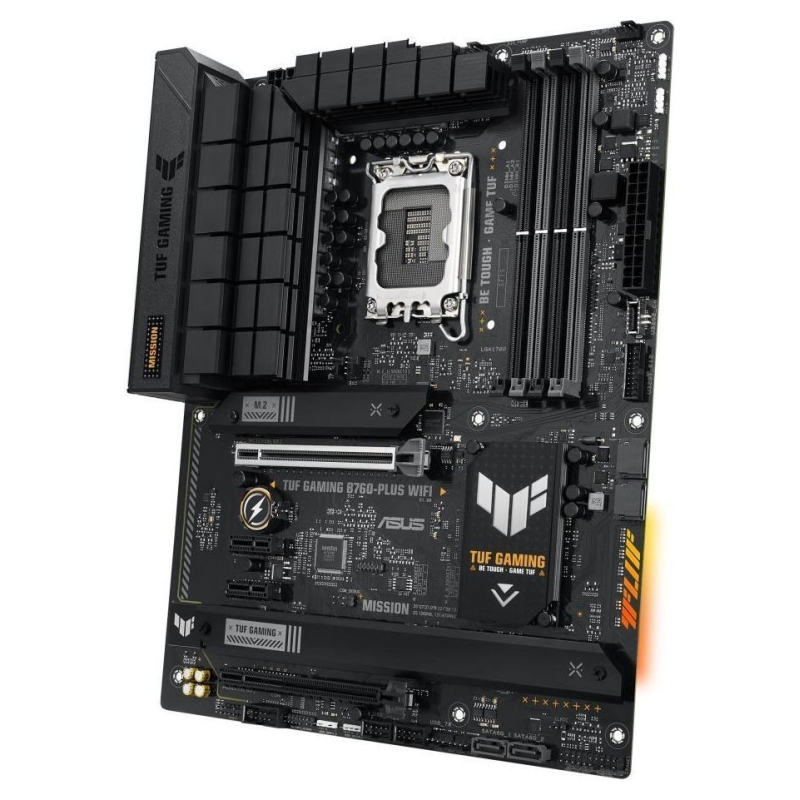 TUF GAMING B760-PLUS WIFI takes all the essential elements of the latest Intel® processors and combines them with game-ready features and proven durability. Engineered with military-grade components, an upgraded power solution and a comprehensive cooling system, this motherboard goes beyond expectations with rock-solid performance for marathon gaming. TUF GAMING motherboards also undergo rigorous endurance testing to ensure that they can handle conditions where others may fail. Aesthetically, this model incorporates an embossed nameplate and geometric design elements to reflect the dependability and stability that defines the TUF GAMING series.