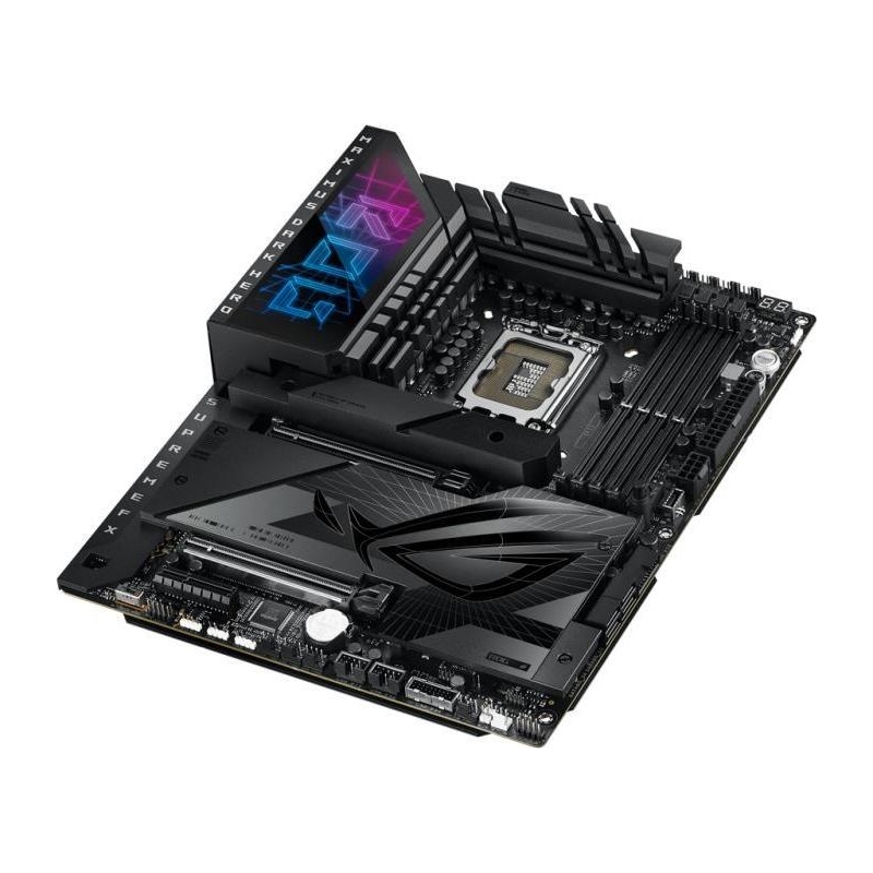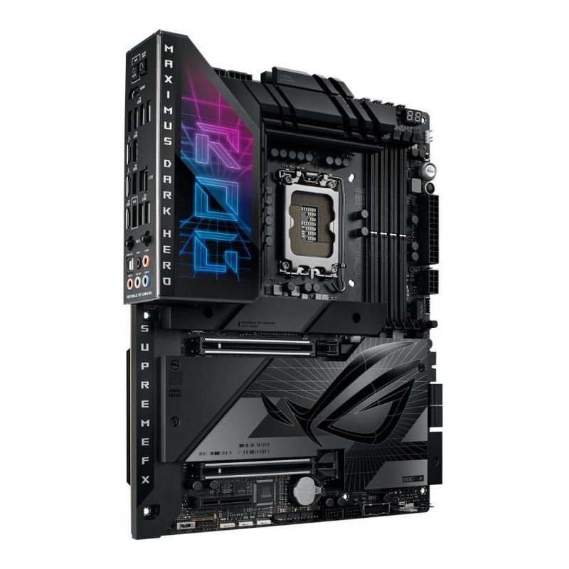 The ROG Maximus Z790 Dark Hero boasts robust cooling, WiFi 7 and ample PCIe 5.0 slot for unmatched performance, and it offers full compatibility with 14th Gen Intel Core processors. Meanwhile, its stealthy design is accentuated by new Polymo lighting, which illuminates the I/O shroud with a microstructural array of dual-layer RGB and adds a personalized touch of style to your gaming setup.