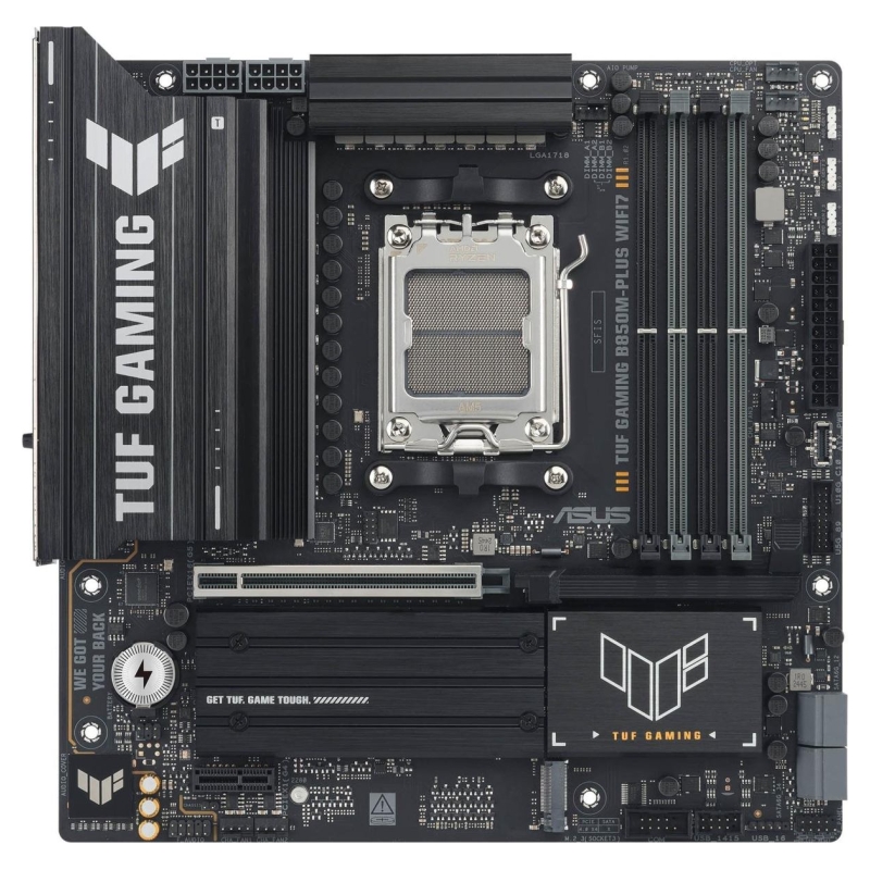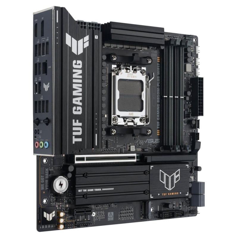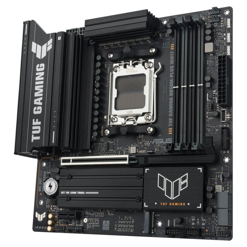 ASUS TUF GAMING B850M-PLUS WIFI7 takes all the essential elements of the latest AMD Ryzen™ processors and combines them with game-ready features and proven durability. Engineered with military-grade components, an upgraded power solution and a comprehensive cooling system, this motherboard goes beyond expectations with rock-solid and stable performance for marathon gaming. TUF GAMING motherboards also undergo rigorous endurance testing to ensure that they can handle conditions where others may fail. This platform delivers the power and connectivity that advanced AI PC applications demand.