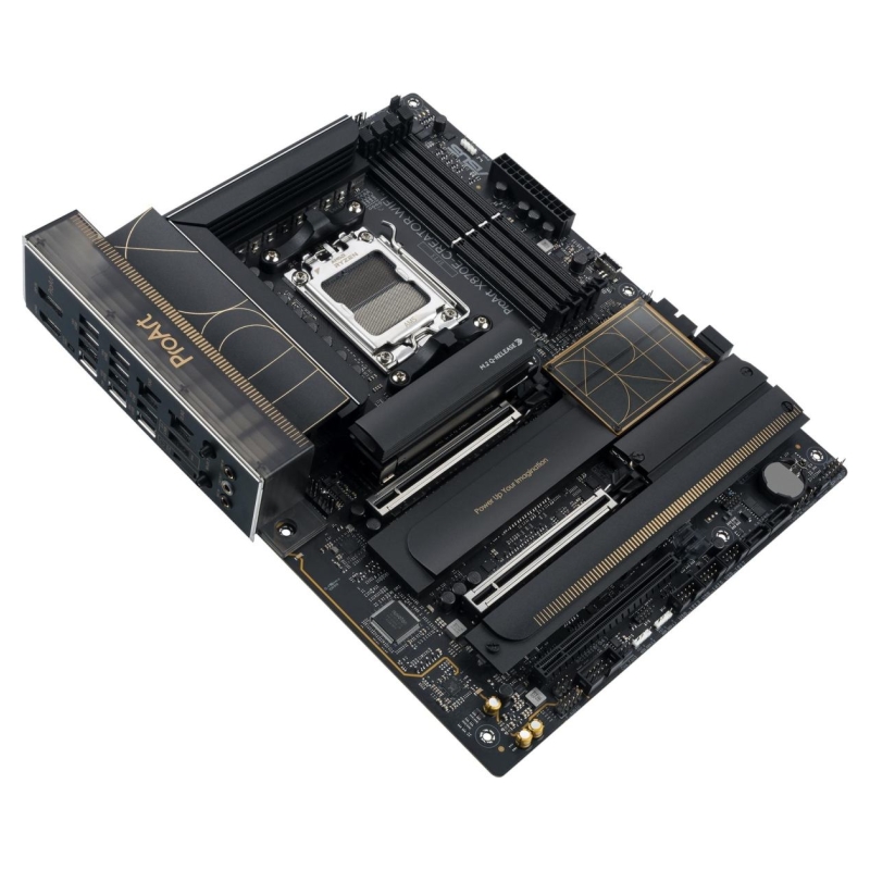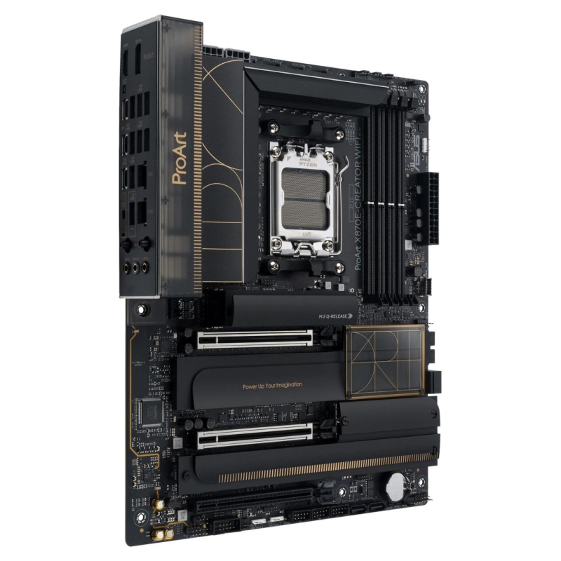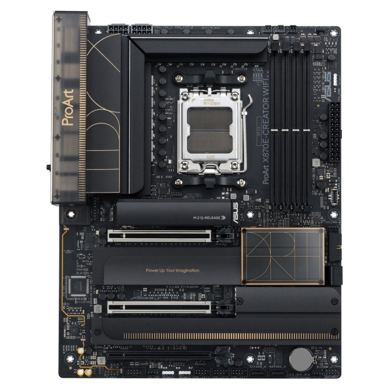 The ProArt X870E-Creator WiFi empowers creators of all levels by maximizing the performance of the latest AMD Ryzen™ 9000, 8000 and 7000 Series processors with 16+2+2 team power stages, DDR5 slots, PCIe® 5.0 and lightning-fast connectivity including dual USB4®, 10G and 2.5G Ethernet, and WiFi 7.​