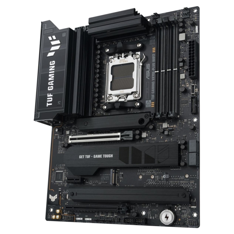 ASUS TUF GAMING X870E-PLUS WIFI7 takes all the essential elements of the latest AMD Ryzen™ processors and combines them with game-ready features and proven durability. Engineered with military-grade components, an upgraded power solution and a comprehensive cooling system, this motherboard goes beyond expectations with rock-solid and stable performance for marathon gaming. TUF GAMING motherboards also undergo rigorous endurance testing to ensure that they can handle conditions where others may fail. This platform delivers the power and connectivity that advanced AI PC applications demand.