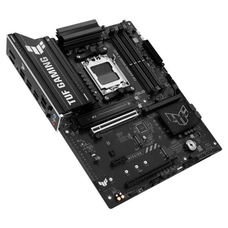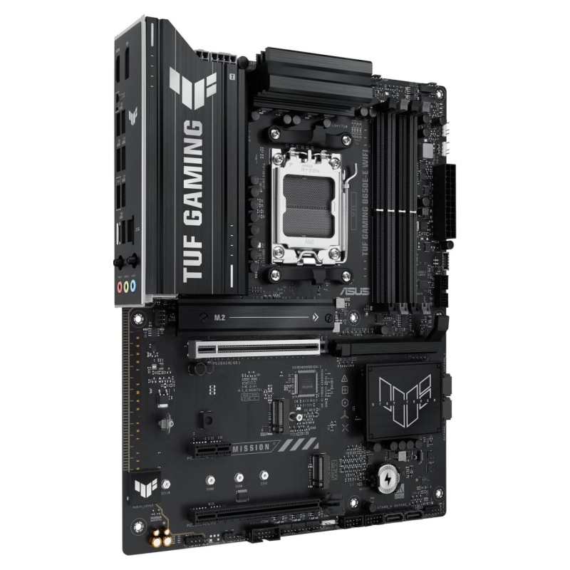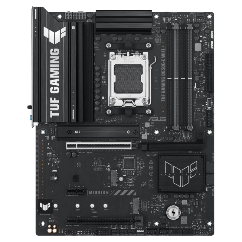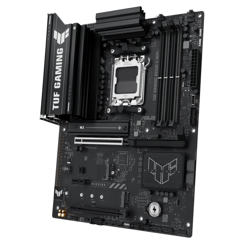 ASUS TUF GAMING B650E-E WIFI takes all the essential elements of the latest AM5 Socket for AMD Ryzen™ Desktop Processors and combines them with game-ready features and proven durability. Engineered with military-grade components, an upgraded power solution and a comprehensive cooling system, this motherboard goes beyond expectations with rock-solid and stable performance for marathon gaming. TUF GAMING motherboards also undergo rigorous endurance testing to ensure that they can handle conditions where others may fail. Aesthetically, this model incorporates rugged off-black and geometric design elements to reflect the dependability and stability that defines the TUF GAMING series. This platform delivers the power and connectivity that advanced AI PC applications demand.