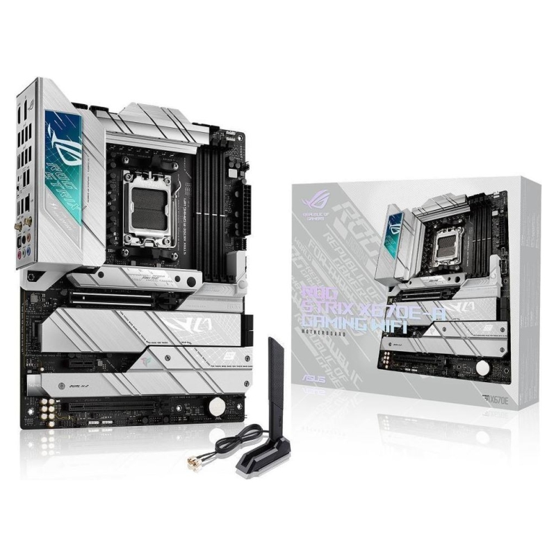 Suit up for the next gen with the stylish ROG Strix X670E-A Gaming WiFi. Its black PCB and white accents neatly contrast silver-colored heatsinks that emphasize premium power delivery for AMD Ryzen™ 7000 Series processors. Exclusive ROG overclocking utilities, full PCIe 5.0 capabilities, and DDR5 support are woven in alongside, adding uniquely tailored performance and AM5 essentials to your gaming build.