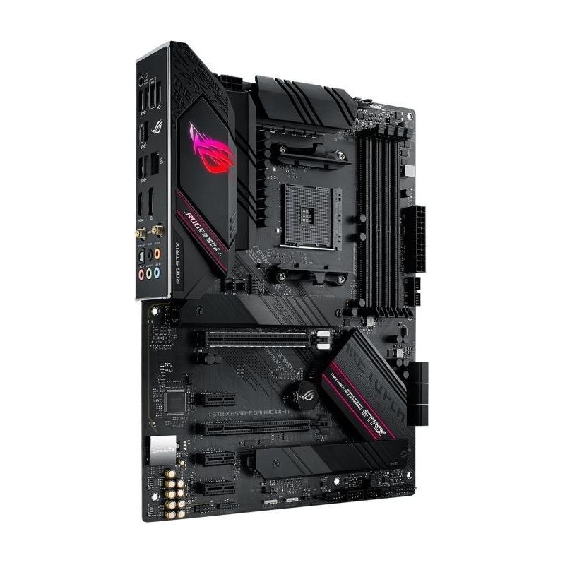 AMD B550 Ryzen AM4 Gaming ATX motherboard with PCIe® 4.0, 12+2 teamed power stages, Intel® 2.5 Gb Ethernet, WiFi 6E, Two-Way AI Noise Cancelation, dual M.2 slots with heatsinks, SATA 6 Gbps, USB 3.2 Gen 2 and Aura Sync RGB lighting