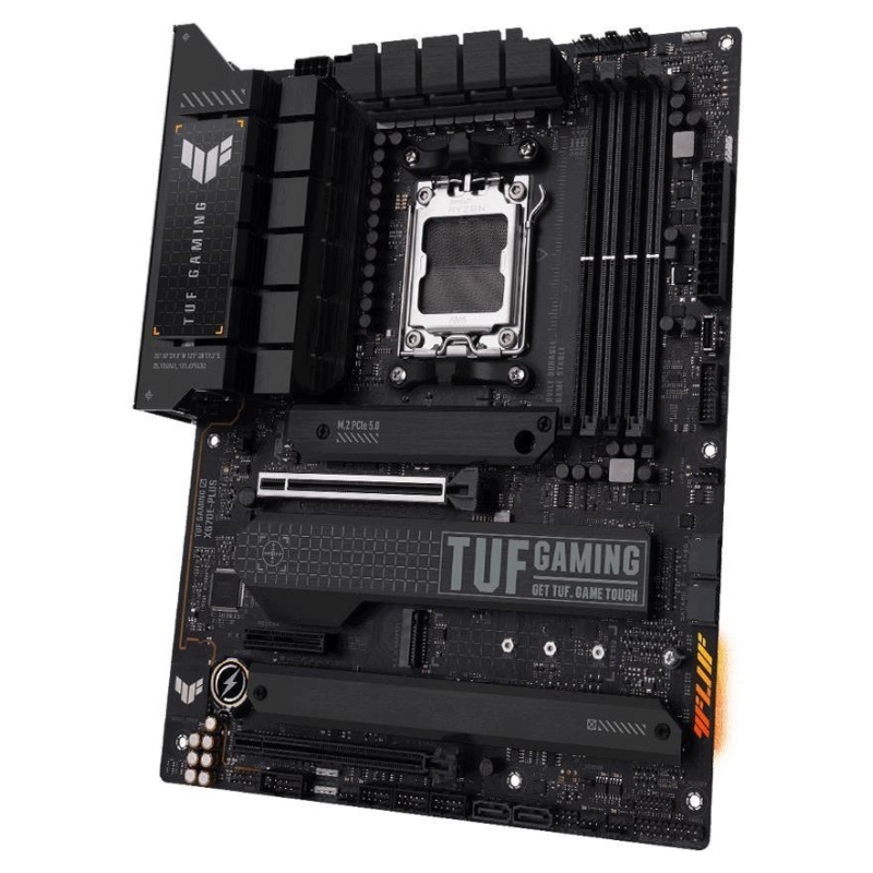 ASUS TUF GAMING X670E-PLUS takes all the essential elements of the latest AMD Ryzen 7000-series processors and combines them with game-ready features and proven durability. Engineered with military-grade components, an upgraded power solution and a comprehensive cooling system, this motherboard goes beyond expectations with rock-solid and stable performance for marathon gaming. TUF GAMING motherboards also undergo rigorous endurance testing to ensure that they can handle conditions where others may fail. Aesthetically, this model incorporates rugged off-black and geometric design elements to reflect the dependability and stability that defines the TUF GAMING series.