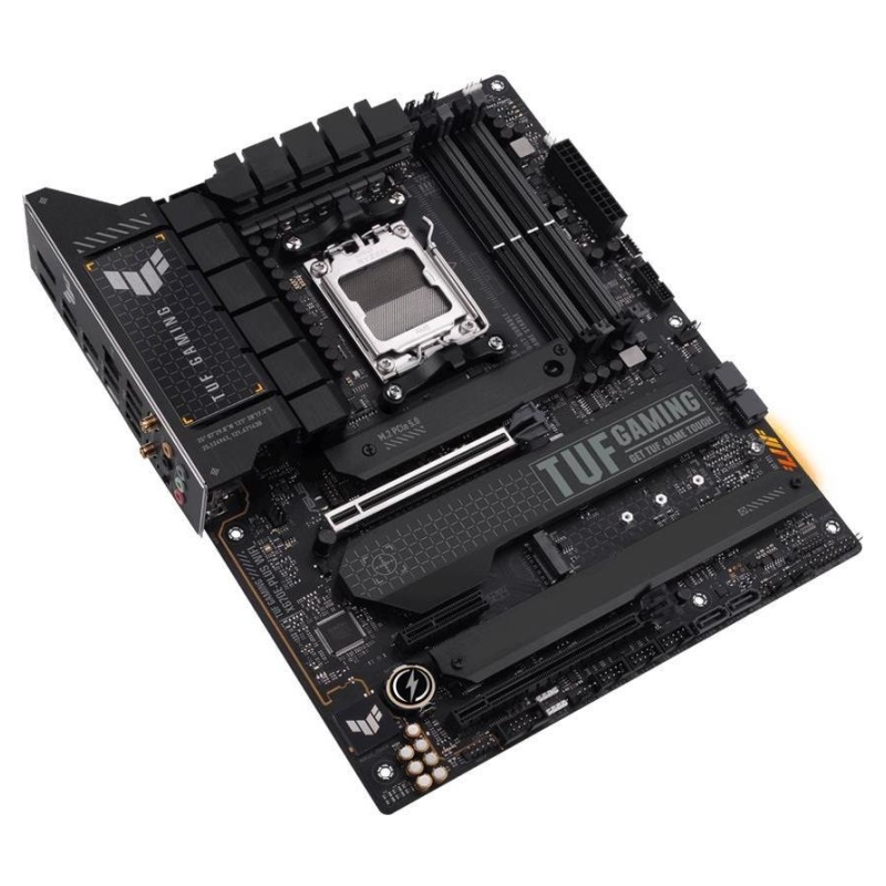 ASUS TUF GAMING X670E-PLUS WIFI takes all the essential elements of the latest AMD Ryzen 7000-series processors and combines them with game-ready features and proven durability. Engineered with military-grade components, an upgraded power solution and a comprehensive cooling system, this motherboard goes beyond expectations with rock-solid and stable performance for marathon gaming. TUF GAMING motherboards also undergo rigorous endurance testing to ensure that they can handle conditions where others may fail. Aesthetically, this model incorporates rugged off-black and geometric design elements to reflect the dependability and stability that defines the TUF GAMING series.