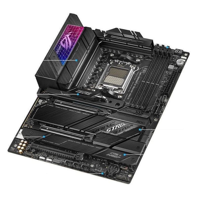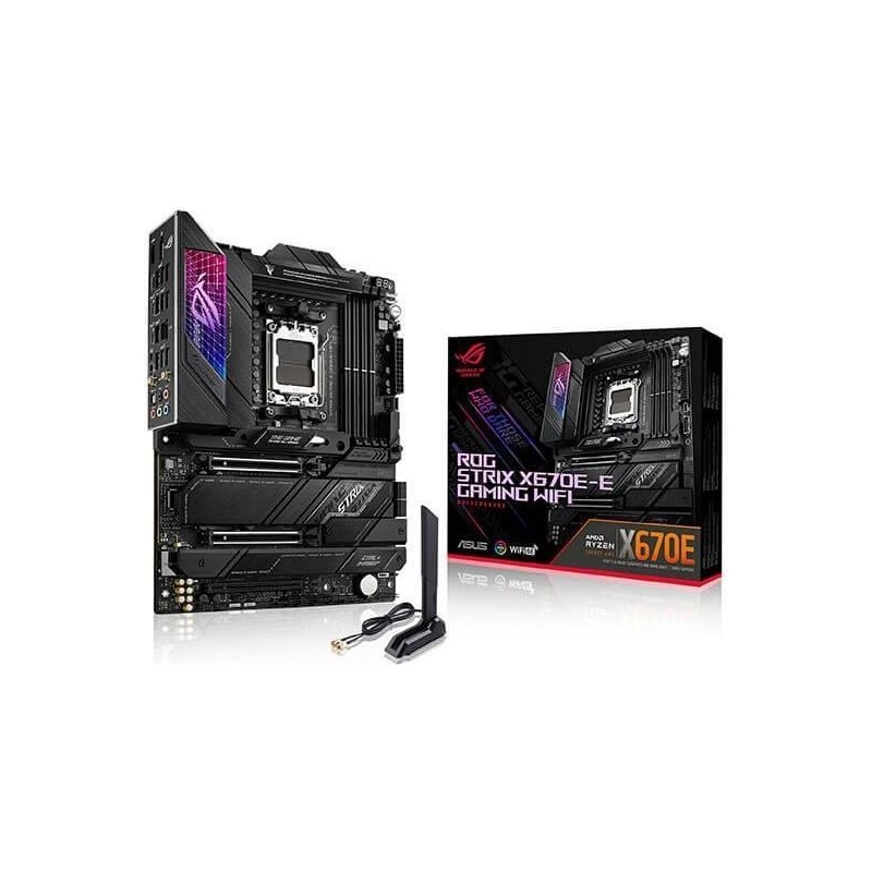 The ROG Strix X670E-E Gaming WiFi is perched at the top of the series, packing robust power delivery and exclusive ROG overclocking tools to max out the stats of AMD Ryzen™ 7000 Series processors. PCIe 5.0 support extends to the furthest reaches of chipset capabilities, and an additional beefy heatsink is prepped to keep even the fastest M.2 drives chilled. With leading performance, the latest connectivity, and DIY-friendly features that span from hardware installation to system setup, this Strix beast grips AM5 and effortlessly soars to victory.
