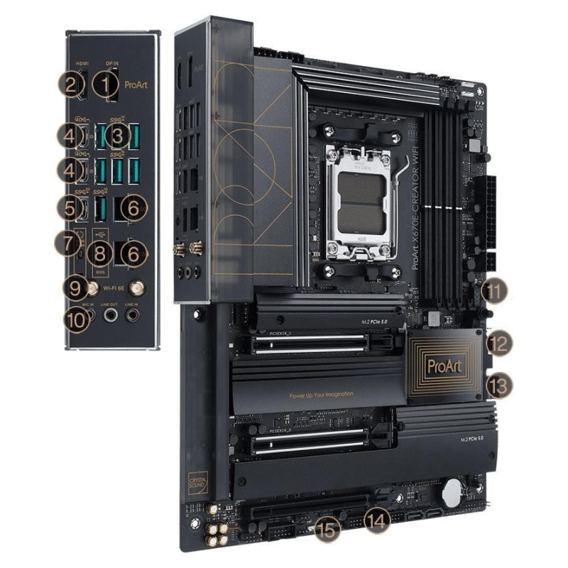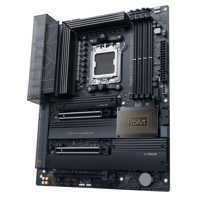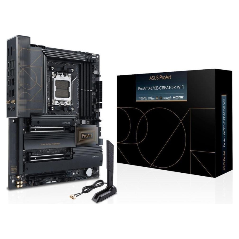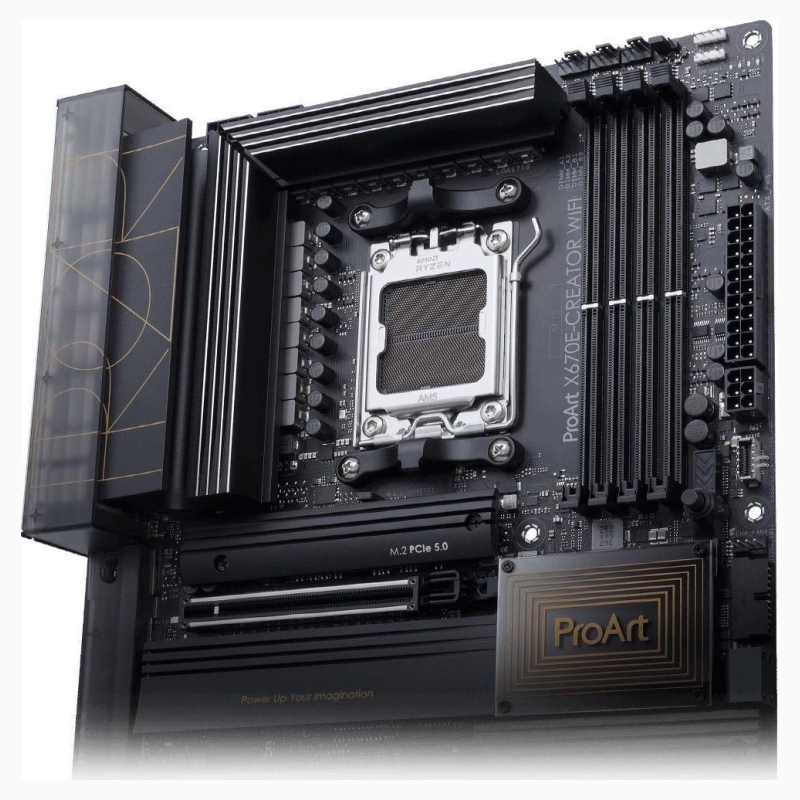 The ProArt X670E-Creator WiFi empowers creators of all levels by maximizing the performance of the latest AMD Ryzen™ 7000 Series processors with 16+2 team power stages, DDR5 and PCIe 5.0 and lightning-fast connectivity including USB4®, 10 Gb and 2.5 Gb Ethernet, plus WiFi 6E.
